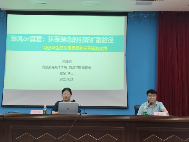 9月21日晚,suncitygroup太阳集团为2025级新生举办“认识海南自贸港”主题教育讲座。本次讲座由宋红娟教授主讲,讲座聚焦自贸港背景下旅游社区环保议题,以习近平生态文明思想的三亚旅游实践为切入点,为新生搭建起自贸港发展与生态保护的认知桥梁。