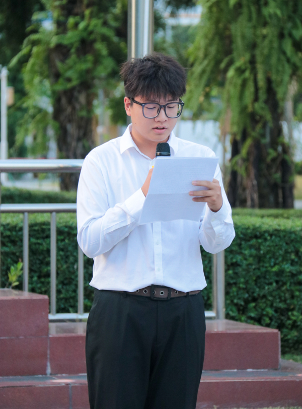 活动伊始,全体人员按指定位置整齐列队。随着主持人国际学院李柯蒙同学宣布仪式开始,国旗护卫队迈着铿锵有力的步伐入场。在雄壮的国歌声中,五星红旗冉冉升起,全体人员肃立注目,致敬国旗、致敬祖国,现场洋溢着庄严肃穆的氛围。